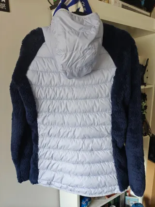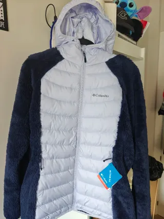 Chaqueta Columbia con cuerpo acolchado y mangas de forro polar. - Cuerpo acolchado en tono lila. - Mangas y laterales de forro polar azul marino. - Capucha integrada. - Cierre de cremallera frontal.