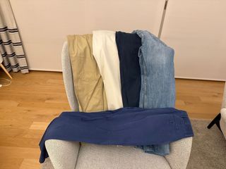 Conjunto de pantalones para hombre. - Pantalon Pedro del Hierro azul marino talla 44, en buen uso -Tomy Hilfiger chino azul y beige SIN USAR, talla 32-34 -pantalon Polo Raph Lauren blanco talla 34-32 SIN USAR -pantalon Tomy Hilfiger, vaquero poco uso talla 34-32 Se venden todos en un paq no por separado
