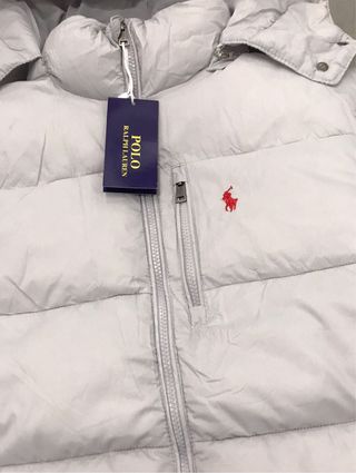 Chaqueta acolchada de Polo Ralph Lauren en color blanco. Cuenta con capucha y cierre de cremallera. - Bolsillos frontales con cremallera. - Logo de la marca bordado en el pecho. - Puños y bajo elásticos.
