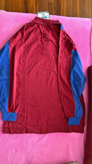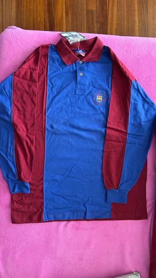 Polo de manga larga con el escudo del FC Barcelona. Talla XL. - Diseño a rayas verticales en azul y granate. - Cuello tipo polo con botones. - Logo bordado. SE RECOGE EN IRUN