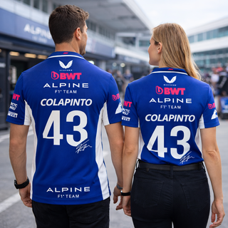 Polo estilo paddock inspirado en el equipo Alpine F1 Team, con el diseño del piloto argentino Franco Colapinto #43. Perfecto para fans de la Fórmula 1 o para quien quiera un look racing auténtico. 🏎️💨 🔹 Diseño tipo equipo oficial de paddock 🔹 Color azul Alpine con detalles blancos 🔹 Sponsors y gráficos estilo competición 🔹 Número 43 y nombre COLAPINTO en la espalda 🔹 Firma del piloto impresa 🔹 Cuello tipo polo con botones 🔹 Tejido cómodo y ligero 📸 Incluye diseño frente y espalda completo, tal como se ve en las imágenes. 👕 Estado: Nuevo 📏 Tallas disponibles: consultar (S-M-L-XL-XXL) 📦 Posibilidad de envío o entrega.