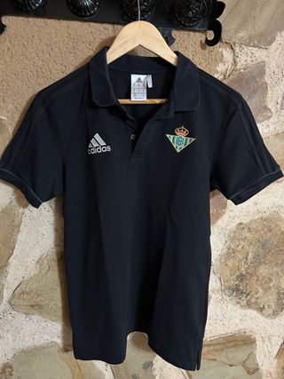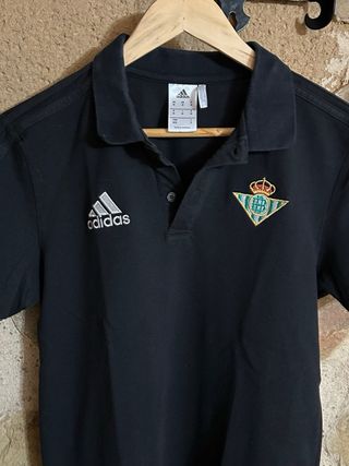 Polo negro vintage del Real Betis con el logo de Adidas. Talla M y en perfecto estado. - Diseño clásico. - Escudo del Real Betis bordado. - Tres rayas características de Adidas en las mangas.