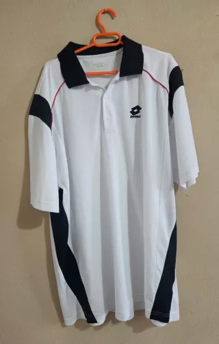 Camiseta tipo polo de la marca Lotto. - Diseño con cuello negro y detalles en negro y rojo en los laterales. - Logo de Lotto bordado en el pecho.
