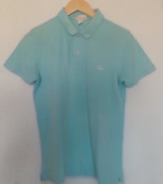 Polo clásico Lacoste de color azul turquesa. Modelo atemporal con el icónico logo del cocodrilo bordado en el pecho. Tejido de algodón de alta calidad, muy cómodo y transpirable. Ideal para un look casual o elegante. En muy buen estado, sin manchas ni desperfectos visibles.