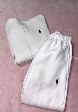 Pantalón de chándal de Polo Ralph Lauren en color blanco. - Logo del caballo y jinete bordado. - Cintura con cordón ajustable. - Puños elásticos en los tobillos.