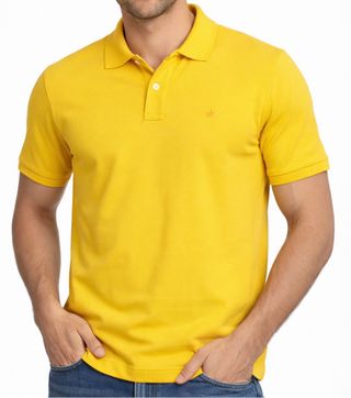 Polo de manga corta en color amarillo vibrante. Un básico versátil para cualquier ocasión. - Cuello clásico con tapeta de dos botones. - Pequeño detalle bordado en el pecho.