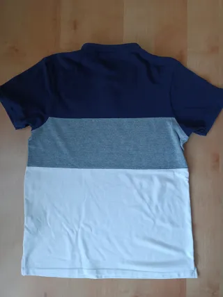Polo de manga corta con un diseño moderno en bloques de color. - Cuello tipo polo con botones. - Detalle de logo bordado en el pecho. - Combinación de azul marino, gris y blanco. Medidas: Largo: 65cms y ancho: 51cms. De 13 a 15 años