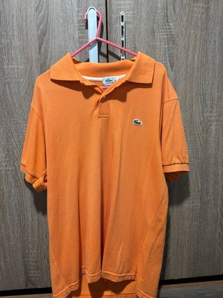 Polo de manga corta Lacoste en color naranja. Ha sido usado solo un par de veces. - Logo del cocodrilo bordado en el pecho. - Cuello clásico de polo con botones.