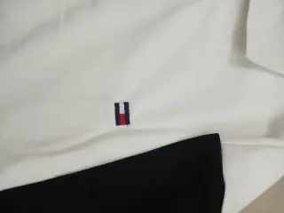Conjunto de chándal de Tommy Hilfiger. - Polo de manga corta con detalles en rojo y blanco. - Pantalón corto con cintura elástica y logo.
