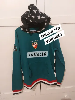 Sudadera con capucha para niño. - Diseño con capucha estampada de estrellas.Detalle de escudo en el pecho. -Marca: Aspen Polo Club, - Talla 16.Nueva sin etiqueta. - Hay varias fotos en el perfil.