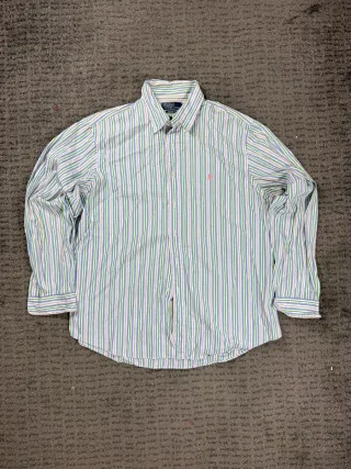 Camisa de manga larga de la marca Ralph Lauren talla pequeña. Es original, logo color azul marino. Muy buen estado. Classic Fit (recta).