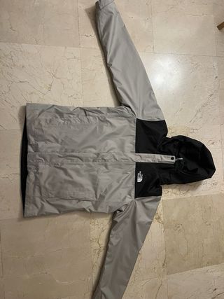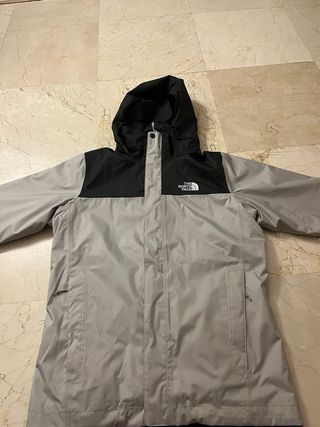 Chaqueta The North Face en perfecto estado. Diseño bicolor con capucha. - Abrigo polar incluido dentro ( se puede quitar y utilizar por separado) - Color gris y negro. - Cierre de cremallera frontal. - Bolsillos laterales con cremallera.