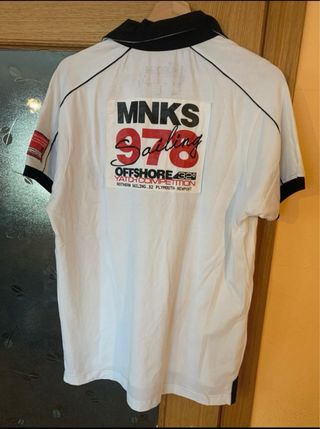 Camiseta tipo polo de la marca Koroshi con diseño gráfico. - Diseño KRS 978 y MANIAKS GRAP HIC DESIGN TEAM. - Detalles de NORTHERN SAILING 63 PLYMOUTH-NEWPORT y OFFSHORE SAILING. - Inscripción Koroshi Sailing Team y YATCH COMPETITION SINCE 1978. - Parche de ADVENTURE SPORTS TM KRS en la manga.