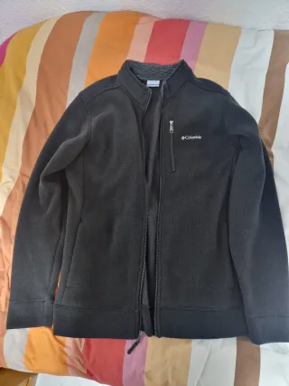 Forro polar Columbia de color gris oscuro, ideal para el frío. Talla L, tiro largo. - Cierre completo con cremallera. - Bolsillo en el pecho con cremallera. - Cuello alto.