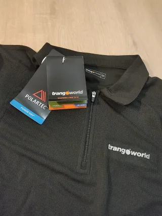 Polo de manga corta en tejido transpirable marca Trangoworld. - Tejido técnico Polartec Power Dry. - Cremallera frontal. - Logo de la marca en el pecho. Talla m y color Negro