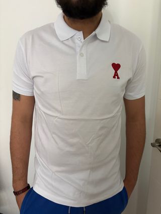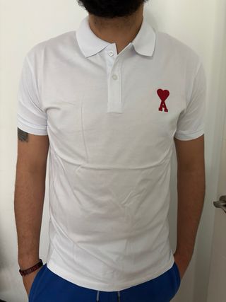 Polo de manga corta con el icónico corazón rojo de Ami Paris. - Cuello clásico. - Cierre de dos botones. - Logo bordado en el pecho. - Disponible en las tallas: M, L, XL y XXL