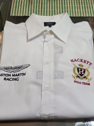 Camisa de manga larga de la marca Hackett, con un diseño inspirado en Aston Martin Racing. Logo de Aston Martin Wings bordado en el pecho izquierdo. Escudo de Hackett Polo Team bordado en el pecho derecho. Cierre de botones. 💙Sisa a sisa 60 cm / largo 76 cm ENVÍOS RÁPIDOS Y BIEN PRESENTADOS