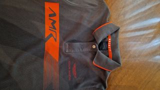 Polo de piqué de la marca Hackett, con detalles en naranja y el logo de Aston Martin. Está en buen estado. - Talla: 7-8 años - Cuello tipo polo. - Manga corta.