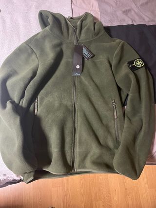 Forro polar de la marca Stone Island en color verde oliva. Cuenta con capucha y cierre de cremallera. - Logo de la marca en la manga. - Dos bolsillos frontales con cremallera.