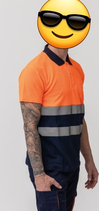 Polo de trabajo de alta visibilidad con diseño bicolor. - Manga corta. - Cuello camisero. - Cierre de tres botones. - Bolsillo en pecho. - Bandas reflectantes. Hago envíos