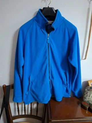 Forro polar de color azul con cierre de cremallera. - Material de forro polar. - Cierre completo con cremallera. - Cuello alto. - Dos bolsillos laterales con cremallera.( las cremalleras del bolsillo no funcionan)