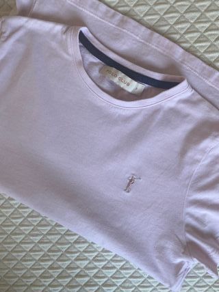 Polo de manga corta en color turquesa. Cuello clásico con detalle de ribete fucsia. Usado en una ocasión. - Logo de la marca bordado en la etiqueta. - Cierre de dos botones. - 44 cms de ancho x 62 cms de largo - 40 cms de hombros x 50 cms de sisa