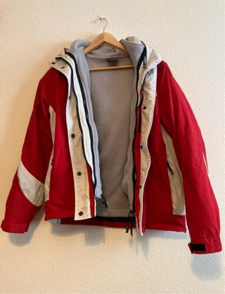 Cazadora chaqueta de la marca Ternua tres en uno. Se puede llevar la chaqueta impermeable junto con el forro polar o por separado. 🧵Chaqueta con cierre de cremallera y también botones. Con bolsillos con cremallera. Tanto el forro polar como la chaqueta impermeable tienen una cuerdita de la que se puede tirar para ajustar a la cadera y entre aún menos frío adaptándose a tu cuerpo. Con gorro capucha que se puede quitar. 💧💨Repelente al agua y cortavientos. ❄️Perfecta combinación para el frío. Impermeable, tecnología waterproof. 🏷️ Talla M 📏 cazadora exterior entre sisas 52cm largo 58cm, forro polar entre sisas 50cm largo 55cm