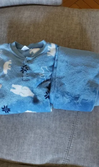 Conjunto de pijama polar con estampado de osos polares. La parte superior es azul marino y el pantalón es de color granate. - Tejido suave y cálido. - Diseño divertido con osos polares. - Parte superior con botones en el cuello. - Puños y tobillos elásticos.