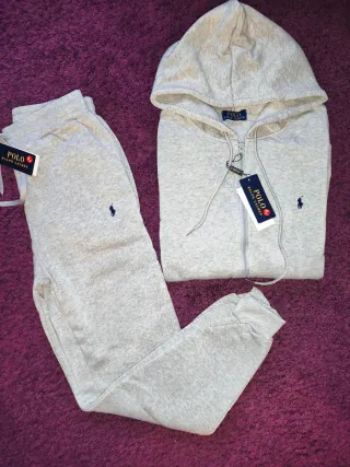 Conjunto de chándal de Polo Ralph Lauren en color gris. Incluye sudadera con capucha y pantalón. - Sudadera con cremallera completa. - Pantalón con cintura elástica y cordón. - Logo bordado en ambas prendas.