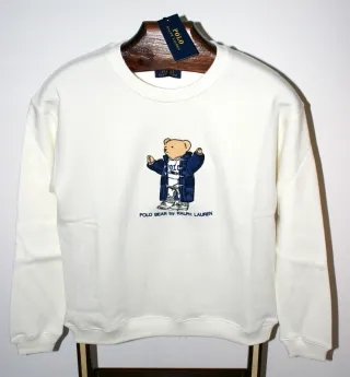 Sudadera original de Polo Ralph Lauren para mujer, nueva con etiqueta. Modelo con el icónico Polo Bear bordado en la parte frontal, un diseño clásico y muy buscado. 📏 Medidas: Axila a axila: 52 cm Largo: 60 cm ✔️ Estado: Nueva, sin usar, con etiqueta ✔️ Color: Blanco ✔️ Ajuste cómodo y tejido de calidad Sudadera de mujer con el icónico Polo Bear de Ralph Lauren. Es una prenda cómoda y con un diseño distintivo. - Estampado del Polo Bear en el frontal. - Cuello redondo. - Manga larga.