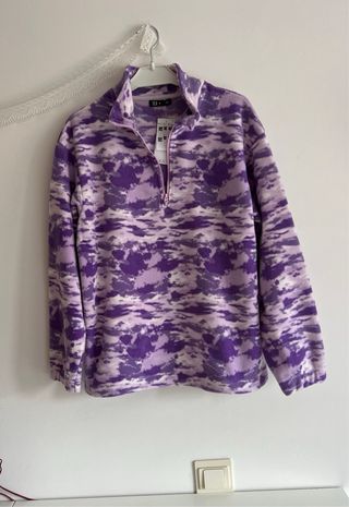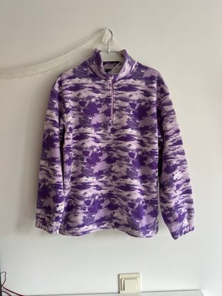 Forro polar de la marca Up, en color rosa suave estampado, de la talla S, con media cremallera en el cuello, muy gordito y agradable. En perfecto estado