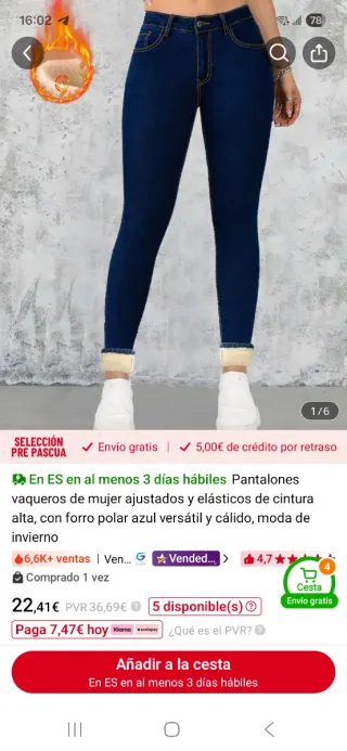 Pantalones vaqueros ajustados y elásticos de cintura alta, con forro polar, ideales para el invierno. - Cintura alta. - Elásticos. - Forro polar interior. - Diseño versátil y cálido.