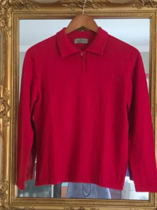 Jersey Vintage, de lana merino de la marca Genfins, talla M. Sin usar. Cuello tipo polo con botón. Manga larga.
