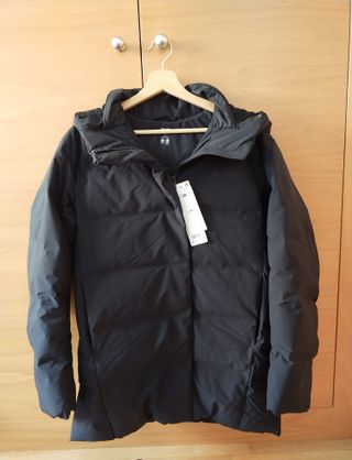Abrigo sin costuras de Uniqlo cálido y resistente al agua, relleno de plumón de ganso de máxima calidad. Pertenece a la temporada actual. Es un abrigo sin costuras con un diseño a prueba de viento que mantiene el frío fuera. El acabado resistente al agua protege de la lluvia ligera por su agente hidrófugo sin fluoruros (el acabado no es permanente). La capucha y el cuello acolchados ofrecen gran calidez y los bolsillos están forrados en tejido polar. El cierre es de cremallera y botones con solapa. 💰 Precio original en tienda: 169,90 € 💸 Mi precio: 100 € 📩 Envío en 24 h para que lo tengas lo antes posible.