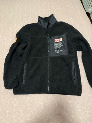 Polar de H&M con diseño de NASA, talla M en corte oversize. - Tejido polar suave y cálido. - Cierre completo con cremallera. - Bolsillo frontal con parche de NASA. - Detalle de bandera en manga izquierda.