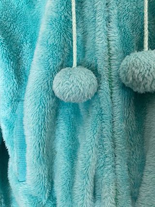 Chaqueta polar muy suave y cómoda, con un diseño juvenil. - Material: Poliéster. - Cierre de cremallera. - Capucha con cordones y dos pompones. - Puños y cintura elásticos. Tiene una pequeña mancha en una manga