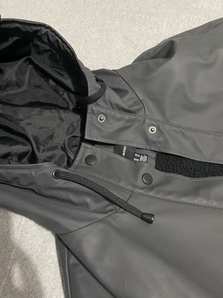 Chubasquero Vero Moda con forro polar para mayor calidez. - Cierre de botones a presión. - Bolsillos frontales con botón. - Capucha integrada. - forro polar interior -prenda ligera e impermeable - pone talla xs pero realmente es una m amplia -muy combinable -prácticamente nuevo, vendo por falta de uso