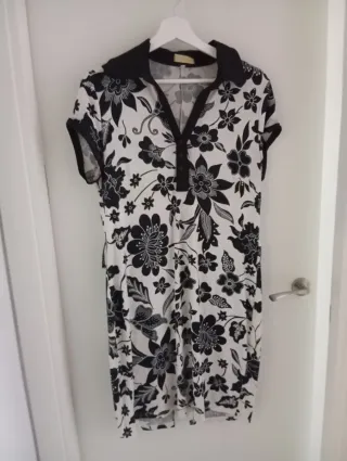 Vestido de mujer con un bonito estampado floral. Ideal para cualquier ocasión. - Diseño de manga larga. - Cuello tipo polo con botones. - Largo hasta la rodilla.
