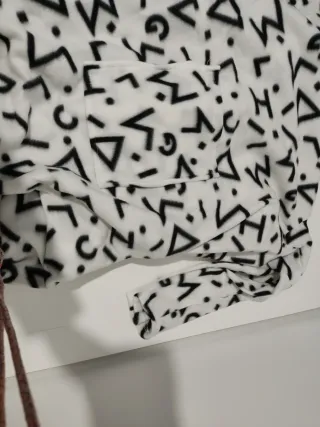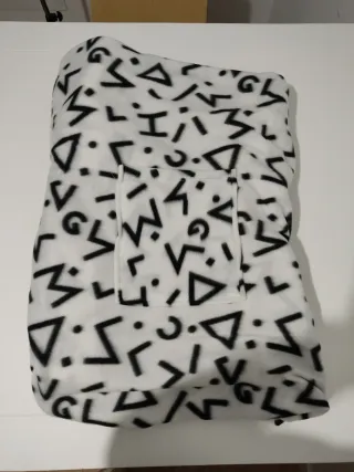 Manta tipo bata con un divertido diseño geométrico en blanco y negro. Es muy suave y cómoda. - Diseño de figuras geométricas y puntos. - Tejido polar.