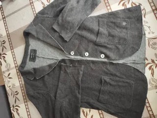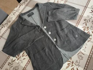 Blazer de punto fino en color gris de la marca Marc O'Polo. - Cierre de dos botones. - Dos bolsillos delanteros. - Cuello solapa. - Acabado deshilachado en puños y bajo.