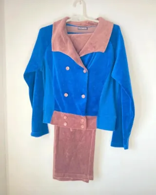 Chándal de casa o pijama de la marca española Promise Design. Está hecho en España (Sant Pol de mar -bcn). Tiene muy buena calidad y caída. Tacto aterciopelado muy suave y agradable. Está en perfecto estado. Poco uso. 75%algodón 25% poliéster Pantalón Cintura 34cm Largo 101cm Chaqueta Ancho 40cm Largo48cm Manga 65cm
