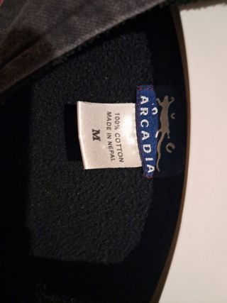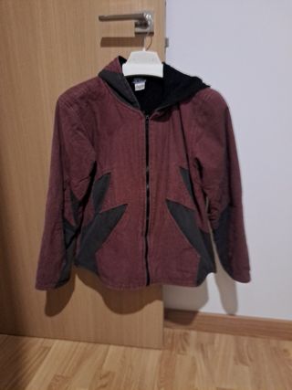 Abrigo talla M. Con forro polar interior. Es un tono granate y negro desgastado.
