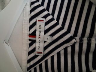 Vestido polo de rayas de Tommy Hilfiger. Es de color azul y blanco, y de talla M. Está en perfecto estado. De sisa a sisa por delante 51 cm. y de largo un metro. - Diseño a rayas marineras - Corte clásico - Tejido suave y cómodo
