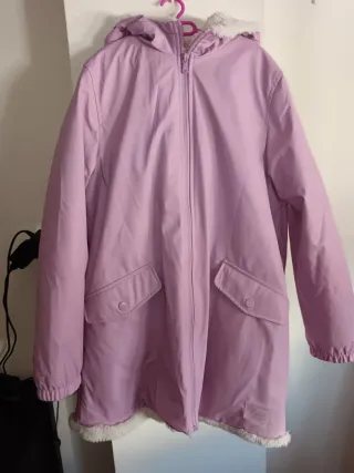 Chubasquero para niña con un bonito diseño. - Capucha con forro interior. - Cierre de cremallera. - Dos bolsillos delanteros con botón. - Puños y bajo con forro de pelo.