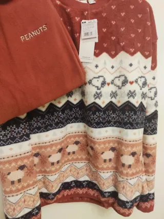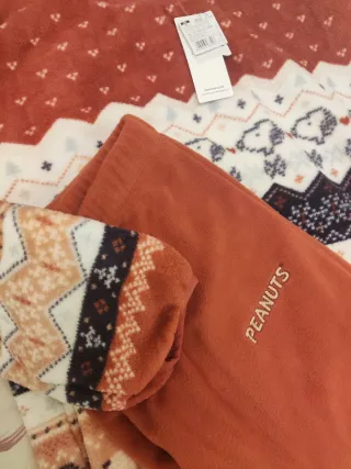 Conjunto de pijama polar con estampado de Snoopy y temática invernal. - Tejido suave y cálido. - Diseño de rayas con figuras de Snoopy y ovejas. - Cuello redondo. Pijama largo de invierno peanuts. Aunque es XS es holgado y vale como S incluso M. La cintura del pantalón es elástica. Súper calentito y muy suave. Sin estrenar.