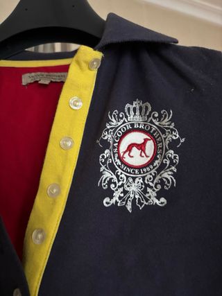 Polo de manga larga con un diseño clásico y elegante. - Cuello tipo polo con botones. - Detalle de escudo bordado con motivos florales y un caballo. - Puños en las mangas. - Talla XL 16 niña, vale S adulto. - Buen estado, muy cuidado.