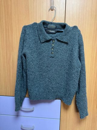 Jersey de punto trenzado con cuello en V. - Logo del caballo bordado en el pecho. - Manga larga. - Puños y bajo acanalados. Regalo sin ticket, el jersey es precioso pero prefiero la ropa un poco mas ceñida y este modelo marca la figura pero se mantiene mas suelto. Ideal tanto para talla 38 suelto como para una 40 mas definida sin ceñir. Tacto magnífico. Usado solo en dos ocasiones.