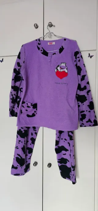 Conjunto de pijama polar con estampado de vaca. - Tejido suave y cálido. - Diseño divertido con estampado de vaca. - Manga larga y pantalón largo.