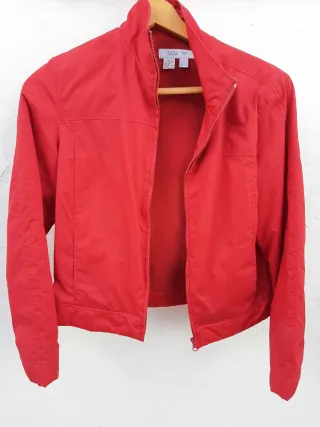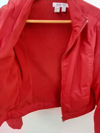 Cazadora de chica en color rojo. Ideal para un estilo casual. Lo mejor es que está forrada con tejido suave de forro polar. Tiene un rojo muy bonito que va con todo, es más bonito que en la foto. - Cierre de cremallera. - Cuello redondo. - Bolsillos laterales