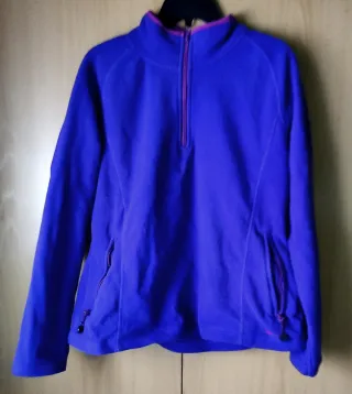 ¡Súper calentito y ligero! Este forro polar es el compañero ideal para tus rutas de senderismo o para estar cómoda y abrigada a diario. Suave al tacto y muy práctico. 🤝 ¡Haz una oferta! 🏷️ Marca: People Universal ⚙️ Material: 100% Poliéster 🎨 Colores: Negro (exterior) / Violeta (interior) 💎 Calidad: 8.5/10 🛍️ Precio tienda: ~15€ ❌ Desperfectos: Ninguno. 📏 Talla: M 🚚 Envíos Rápidos: 24/48 horas. 📦 Empaquetado seguro. 💬 Atención: ¡Respondo rápido! ✨ Estado muy bueno. El tejido está bien cuidado, sin bolitas y la cremallera funciona perfecta.